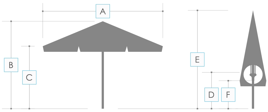 Ombrellone gastronomico 2,5m - Ombrellone quadrato per giardino, bar, ristorante, birreria, negozio, hotel e pubblicità con stampa personalizzata