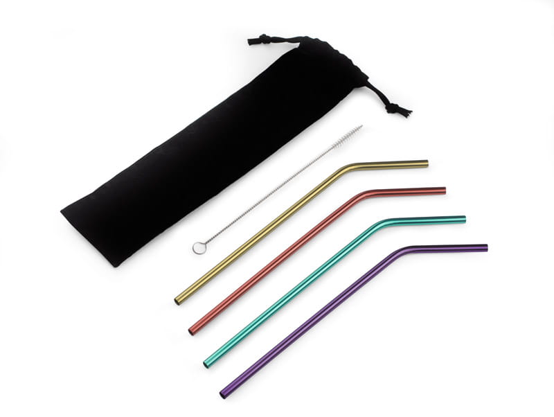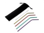 Il set di cannucce in acciaio inox PARTY comprende quattro cannucce curve, ognuna di un colore diverso. Confezionate in una pratica sacchetta in velluto, con spazzolino per la pulizia incluso. Perfette come set regalo. Hanno un aspetto fantastico nel bicchiere e donano originalità al drink. È un prodotto riutilizzabile, che aiuta a non inquinare l'ambiente.